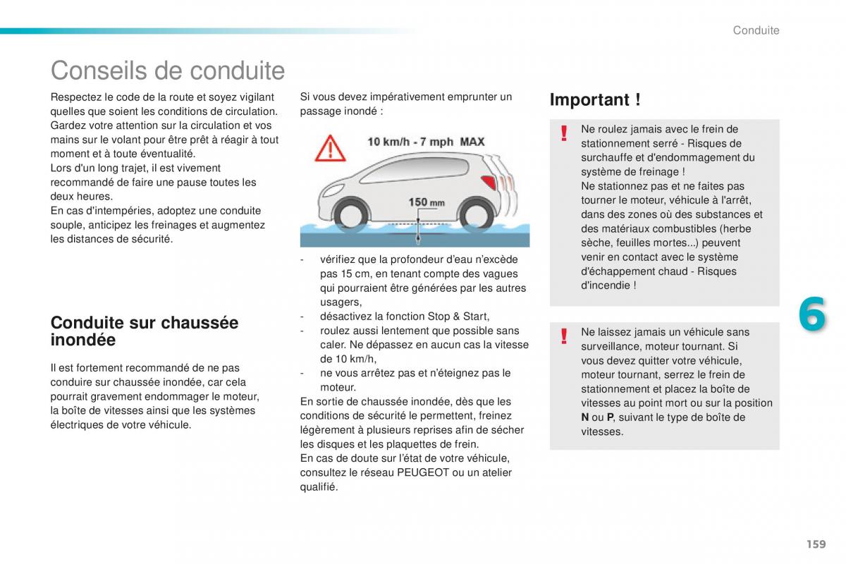 conduire sur chaussée inondée, car cela - ne vous arrêtez pas et n’éteignez pas le moteur tournant, serrez le frein de