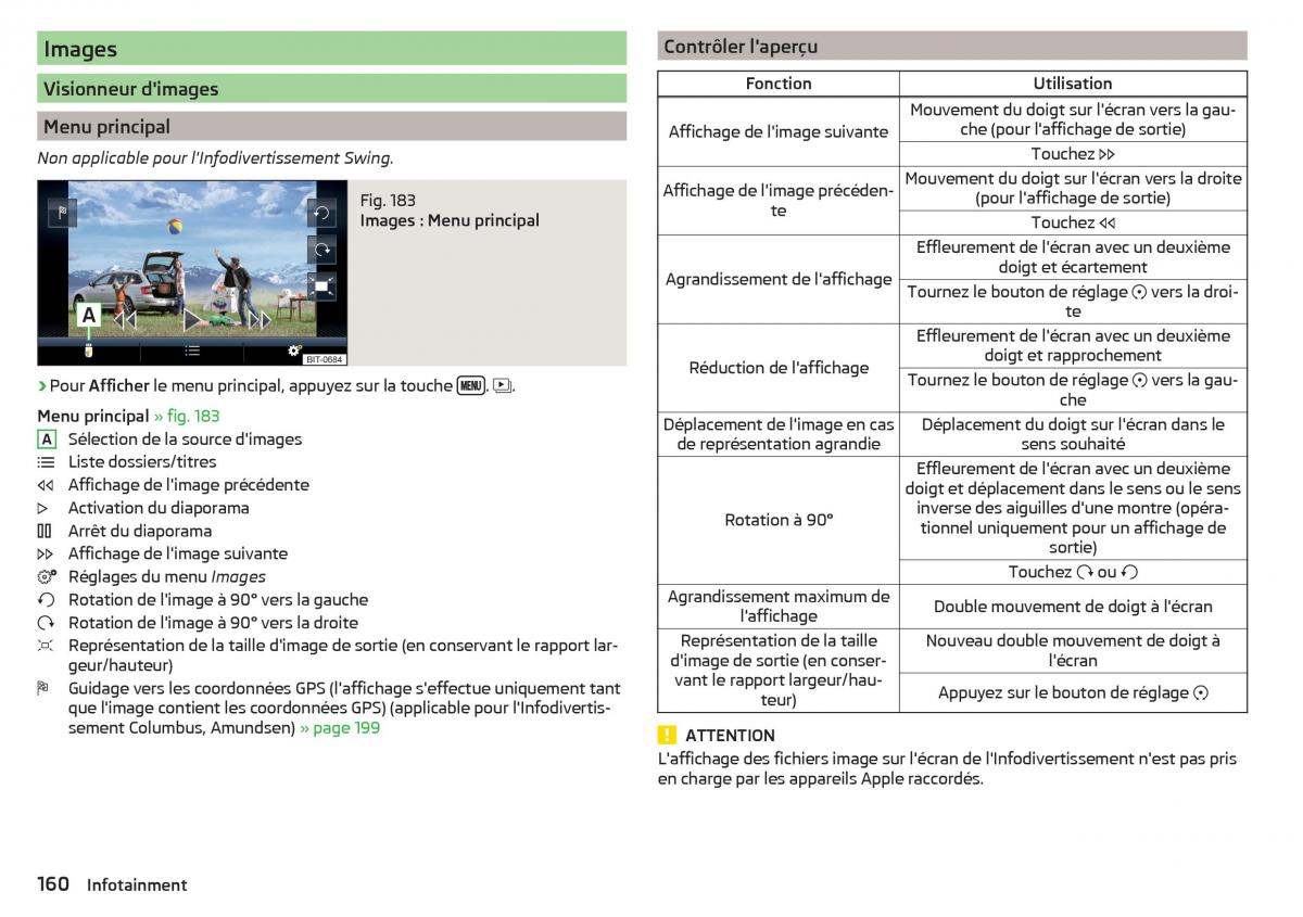 L'affichage des fichiers image sur l'écran de l'Infodivertissement n'est pas pris