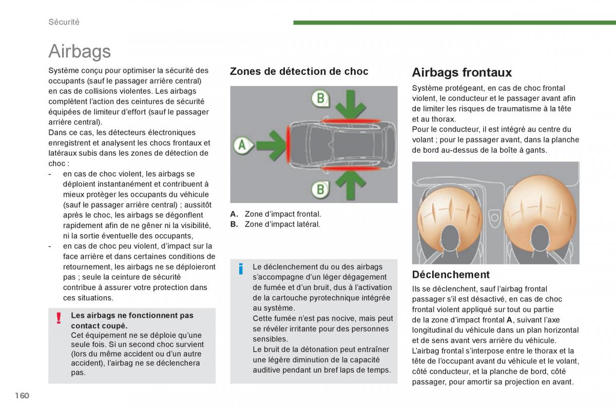après le choc, les airbags se dégonflent A. Zone d’impact frontal.