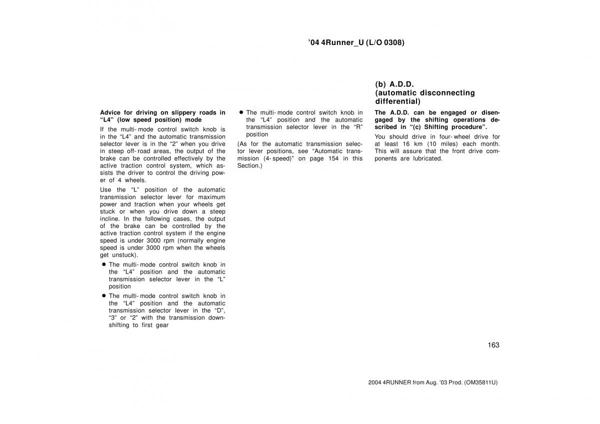 2004 4RUNNER from Aug. ’03 Prod. (OM35811U)