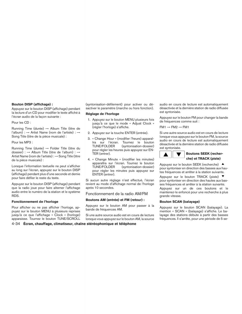 4-34 Écran, chauffage, climatiseur, chaîne stéréophonique et téléphone