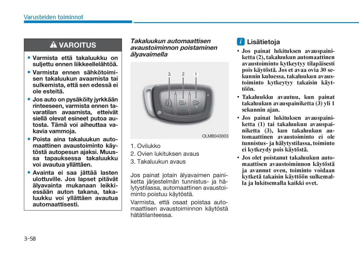 • Poista aina takaluukun auto- OLMB043003 tomaattinen avaustoiminto ei ole