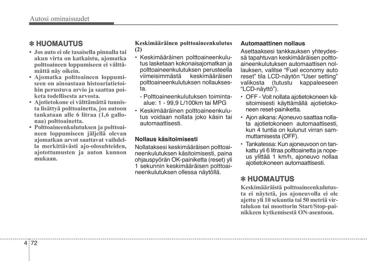 ]HUOMAUTUS Keskimääräinen polttoaineenkulutusAutomaattinen nollaus