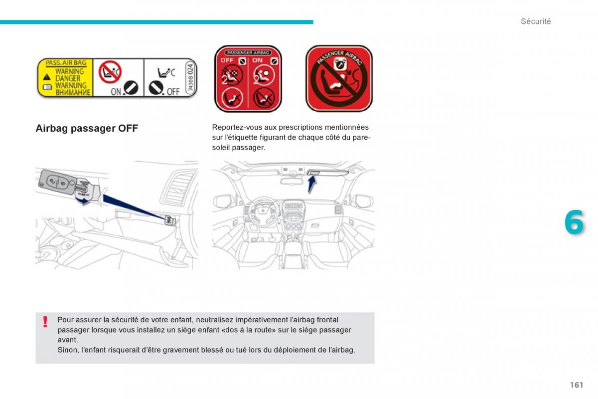 Po ur assurer la sécurité de votre enfant, neutralisez impérativement l’airbagf rontal