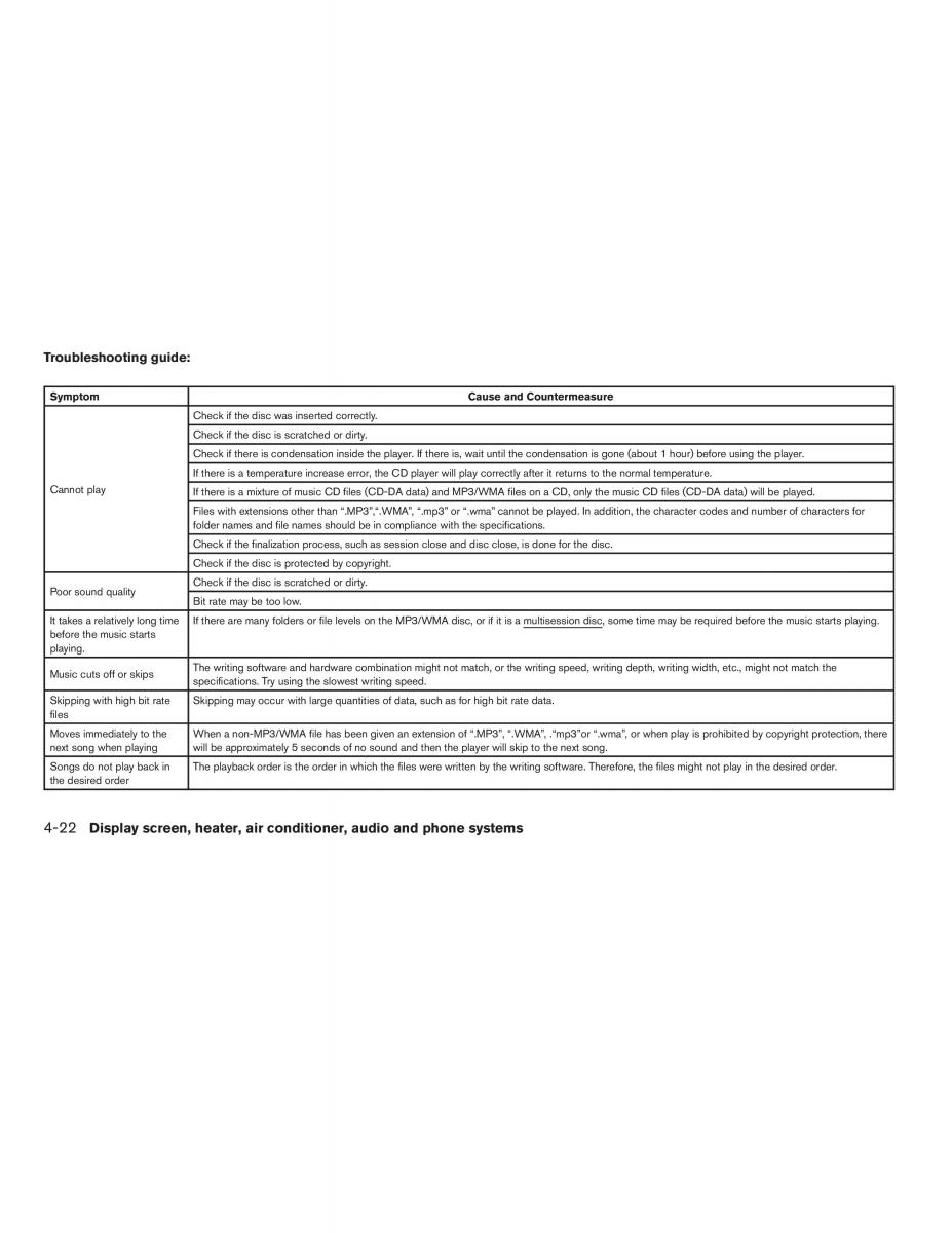 If there is a temperature increase error, the CD player will play correctly after it returns to the normal temperature.