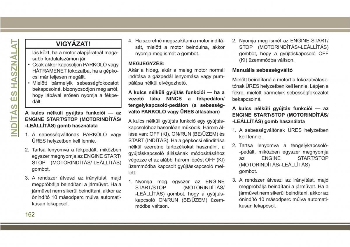 INDÍTÁS1. A sebességváltónak PARKOLÓ vagy kell lennie.