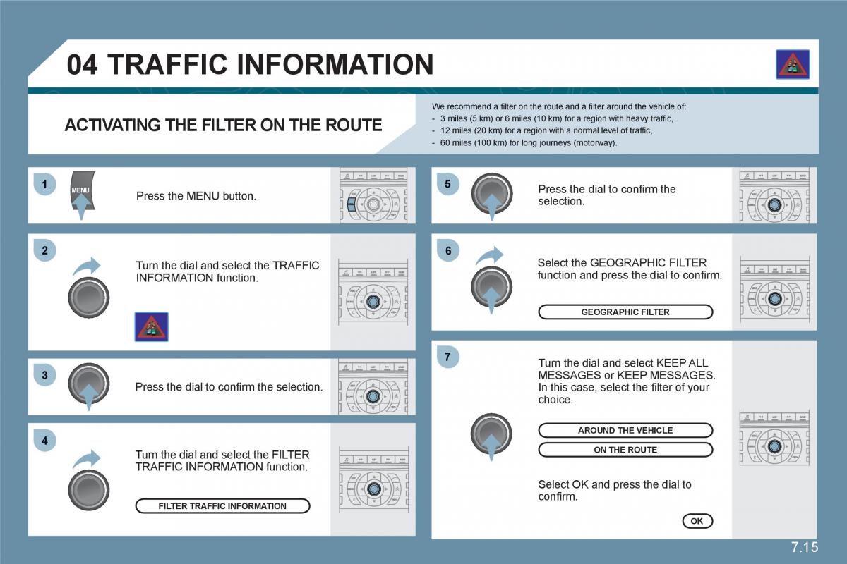 Turn the dial and select the TRAFFI C Select the GEOGRAPHIC FILTER