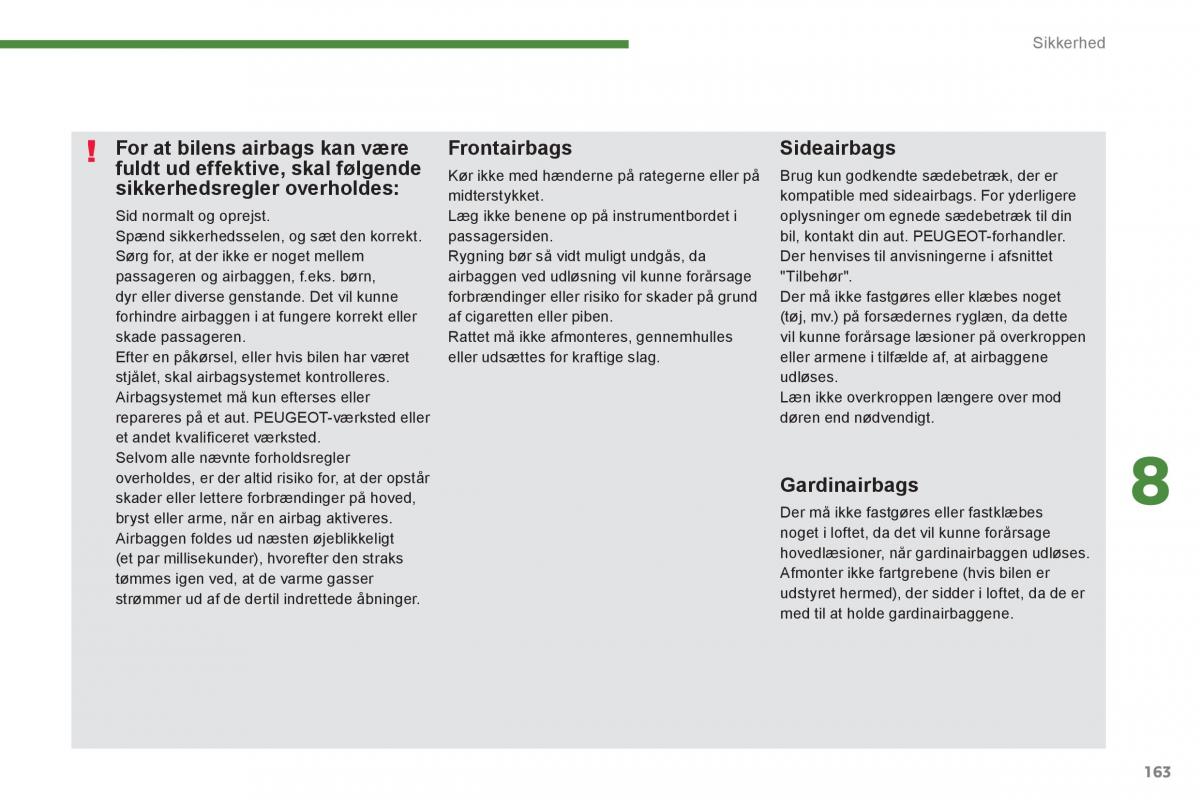 Spænd sikkerhedsselen, og sæt den korrekt. passagersiden. bil, kontakt din aut. PEUGEOT-forhandler.