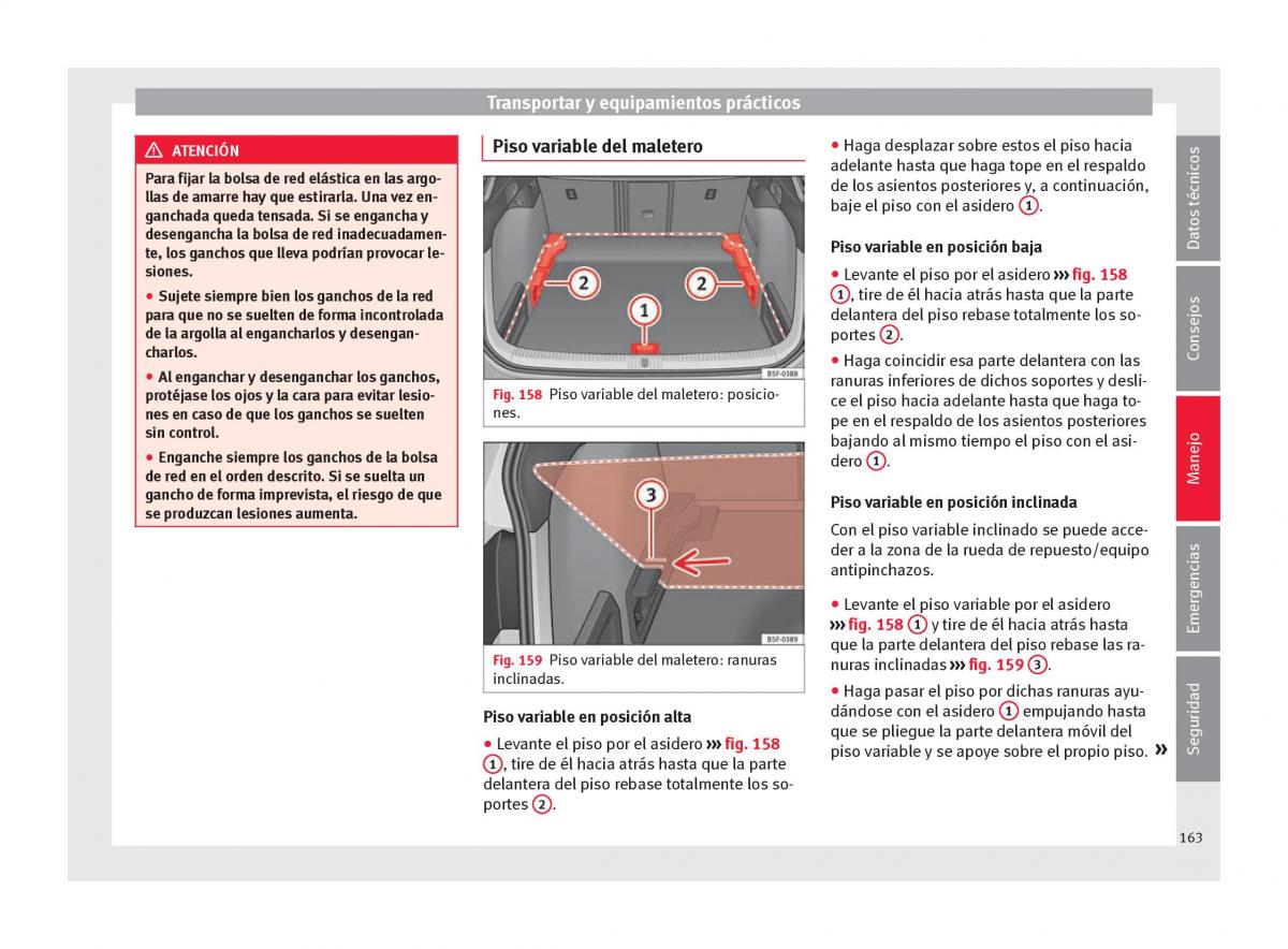 protéjase los ojos y la cara para evitar lesio-Fig. 158 Piso variable del maletero: posicio-