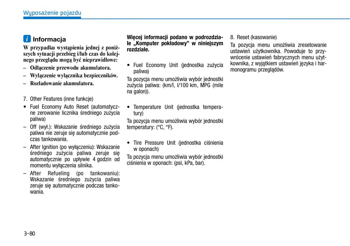 W przypadku wystąpienia jednej z poniż- le „Kompute pokładowy” wninieszym a pozycja menu umożliwia zresetowanie
