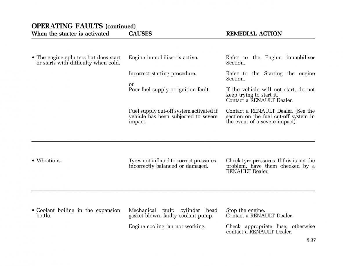 Fuelsupplycut-offsystemactivatedifContact a RENAULT Dealer. (See the