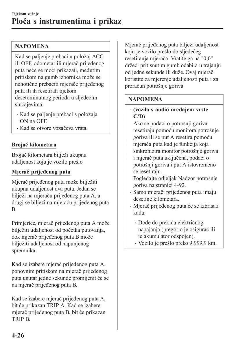 NAPOMENA Mjerač prijeđenog puta bilježi udaljenost