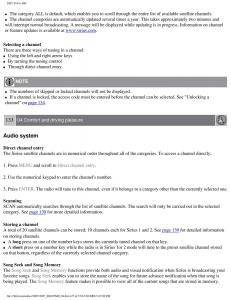 A total of 20 satellite channels can be stored; 10 channels each for Sirius 1 and 2. See page 130 for detailed information