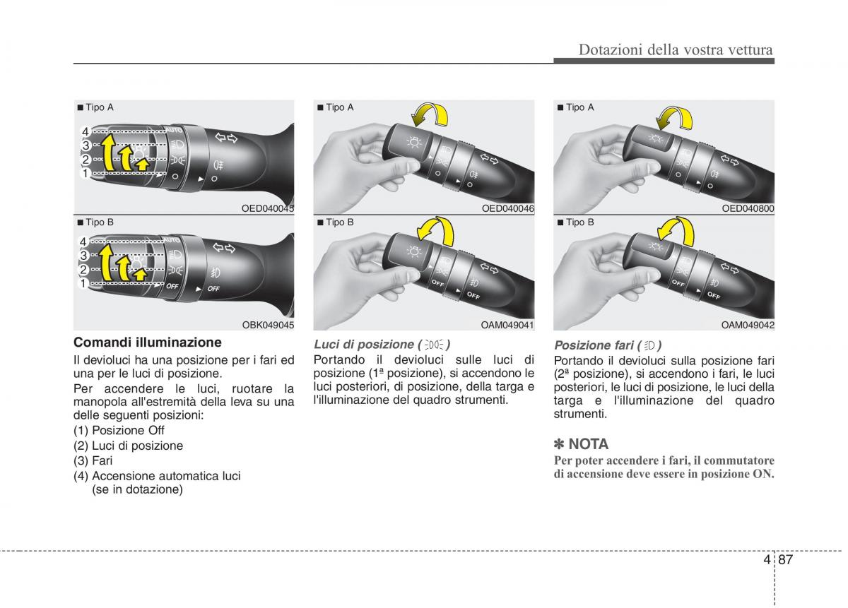 (3) Fari Perpoteraccendere i fari, il commutatore
