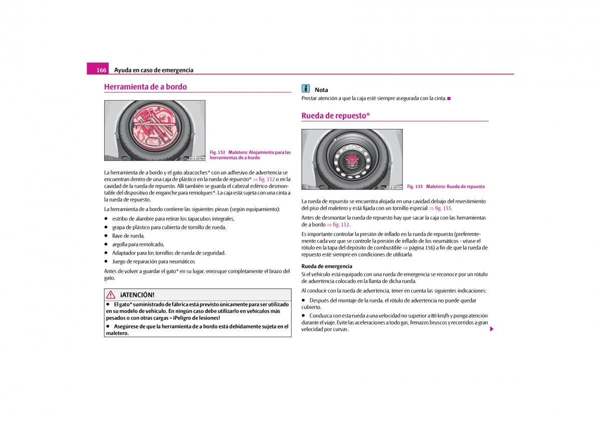 encuentran dentro de una caja de plástico en la ru eda de repuesto* fig. 132 o en la