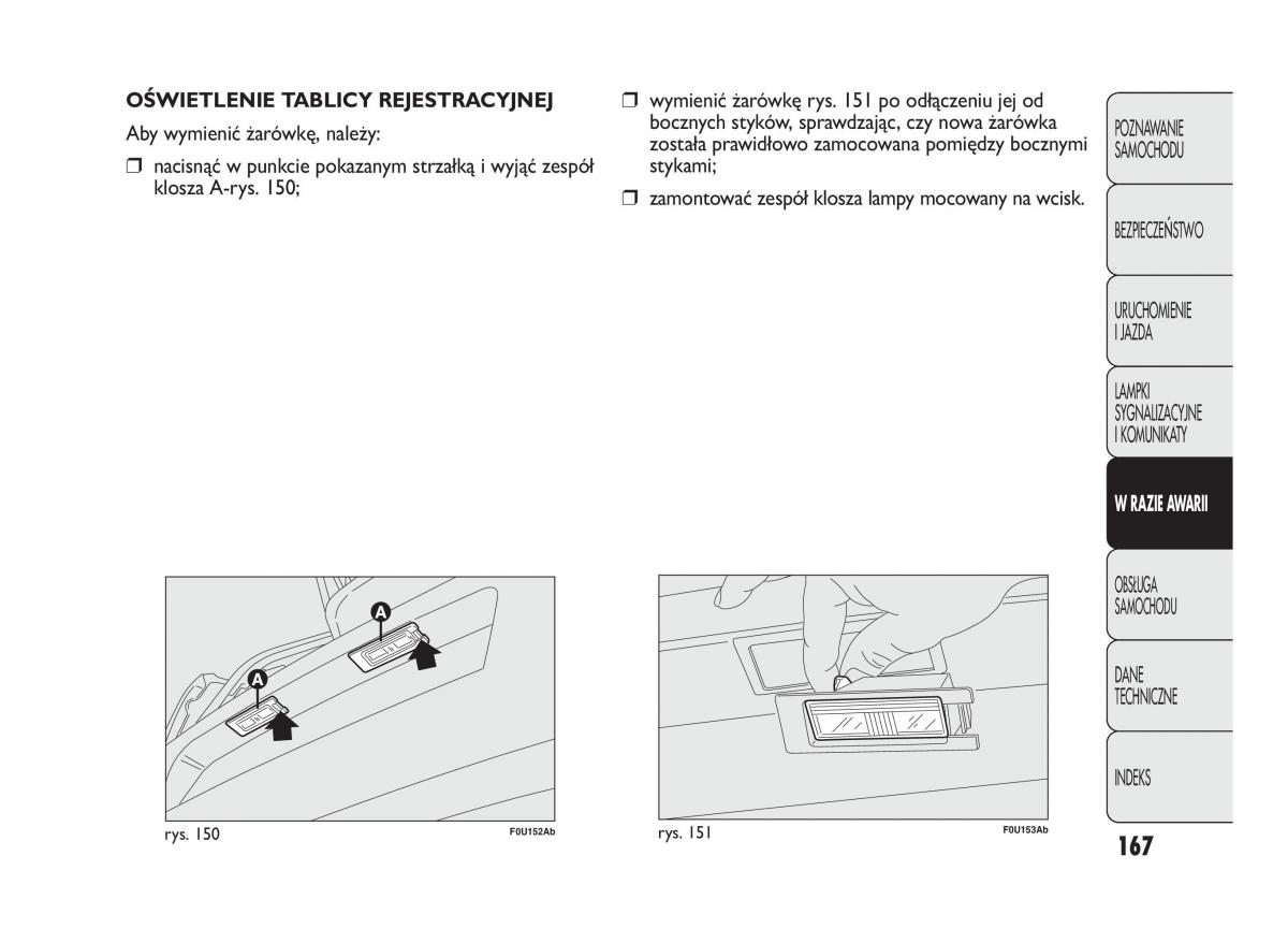 OŚWIETLENIETABLICYREJESTRACYJNEJ ❒ wymienić żarówkę rys. 151 po odłączeniu jej od