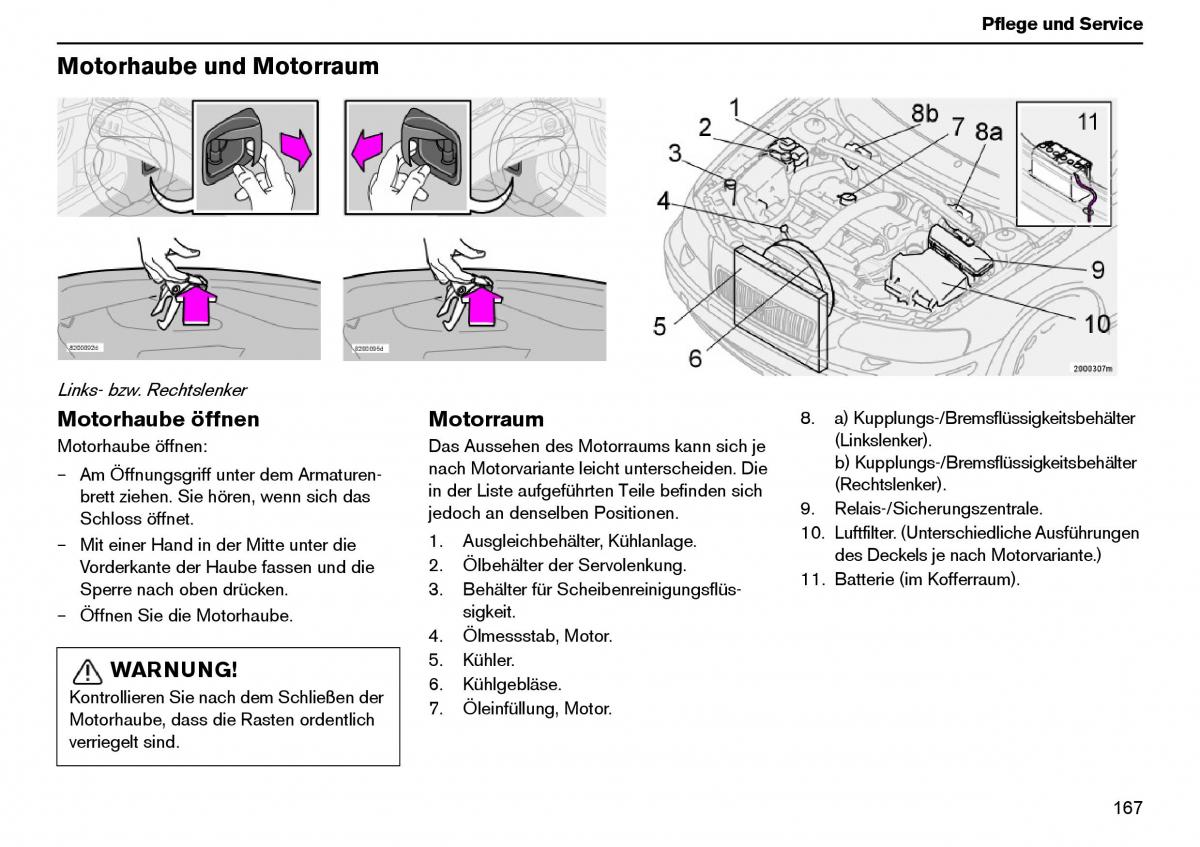 Motorhaube öffnen: DasAussehen des Motorraums kann sich je(Linkslenker).