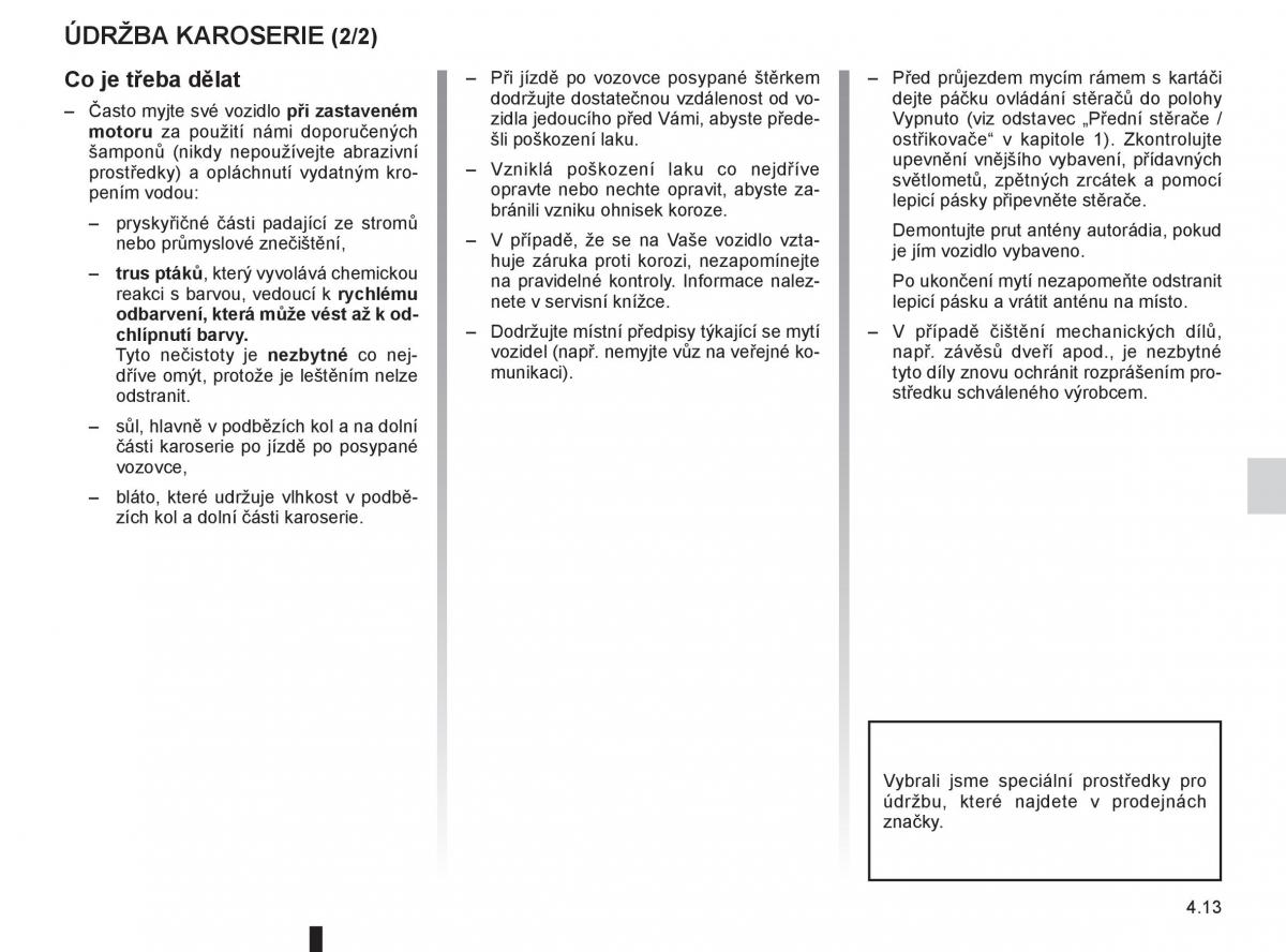 šamponů (nikdy nepoužívejte abrazivní šli poškození laku. ostřikovače“ v kapitole 1). Zkontrolujte