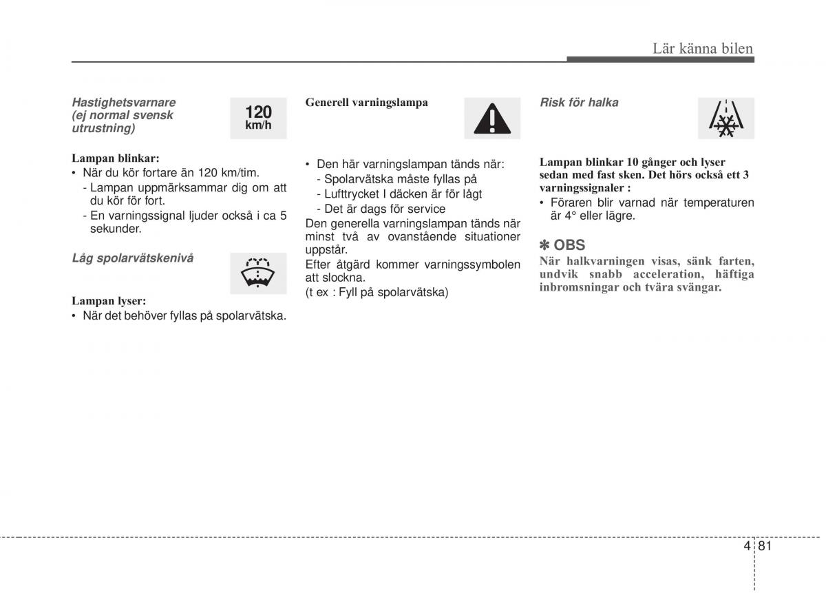 • När du kör fortare än 120 km/tim.- Spolarvätska måste fyllas påsedan med fast sken. Det hörs också ett 3