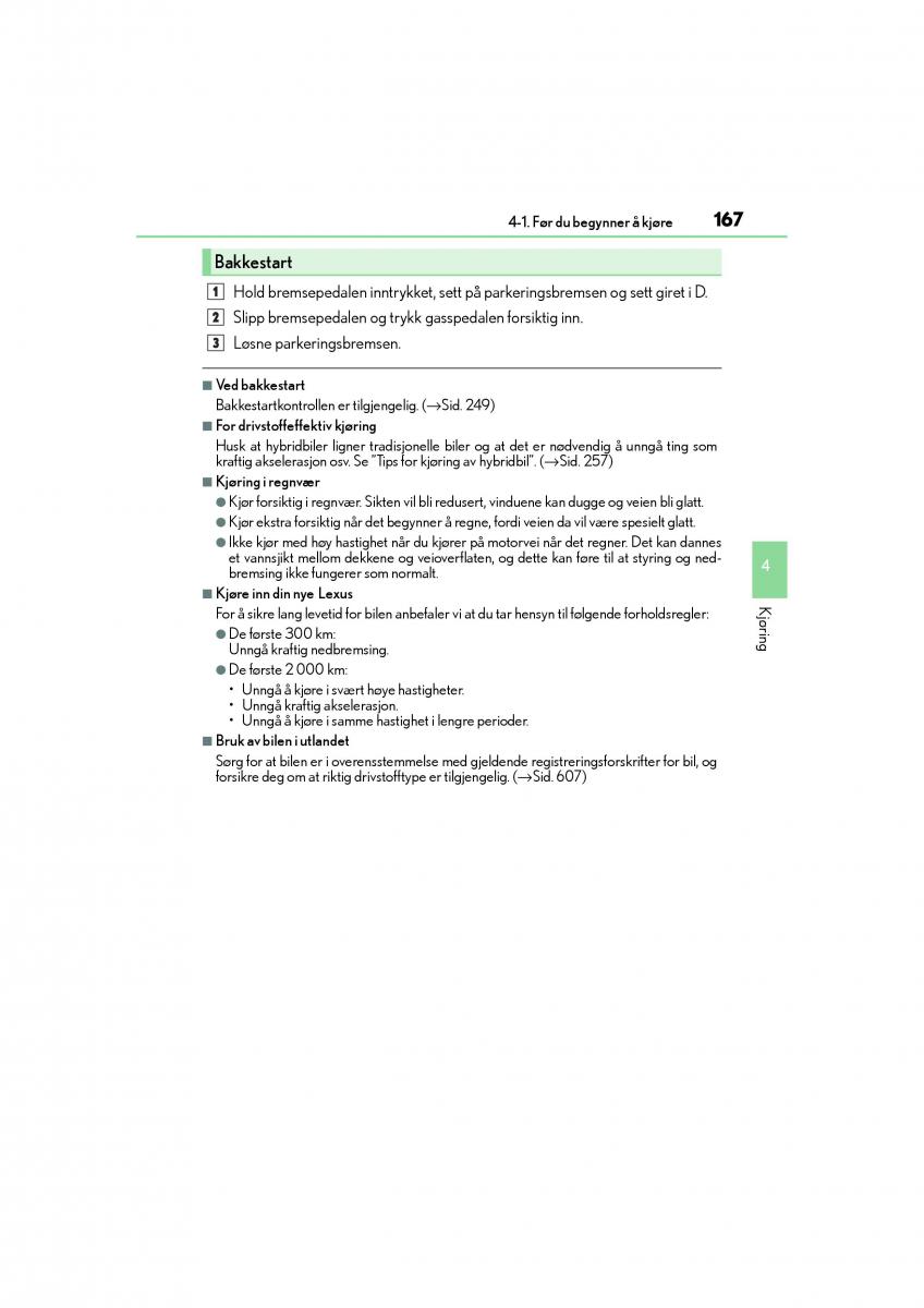 kraftig akselerasjon osv. Se ”Tips for kjøring av hybridbil”. (→Sid. 257)