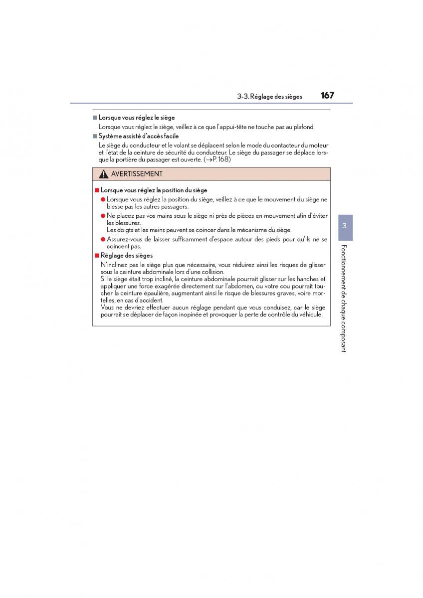 3-3. Réglage des sièges167