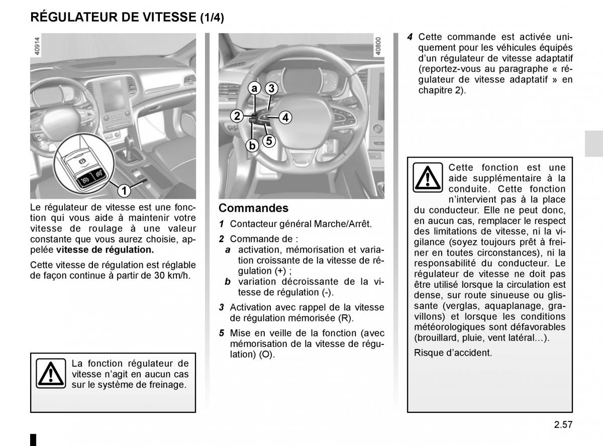 Cette vitesse de régulation est réglable gulation (+) ;responsabilité du conducteur. Le