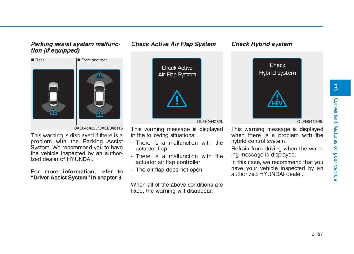 Parking assist system malfunc- Check Active Air Flap System Check Hybrid system