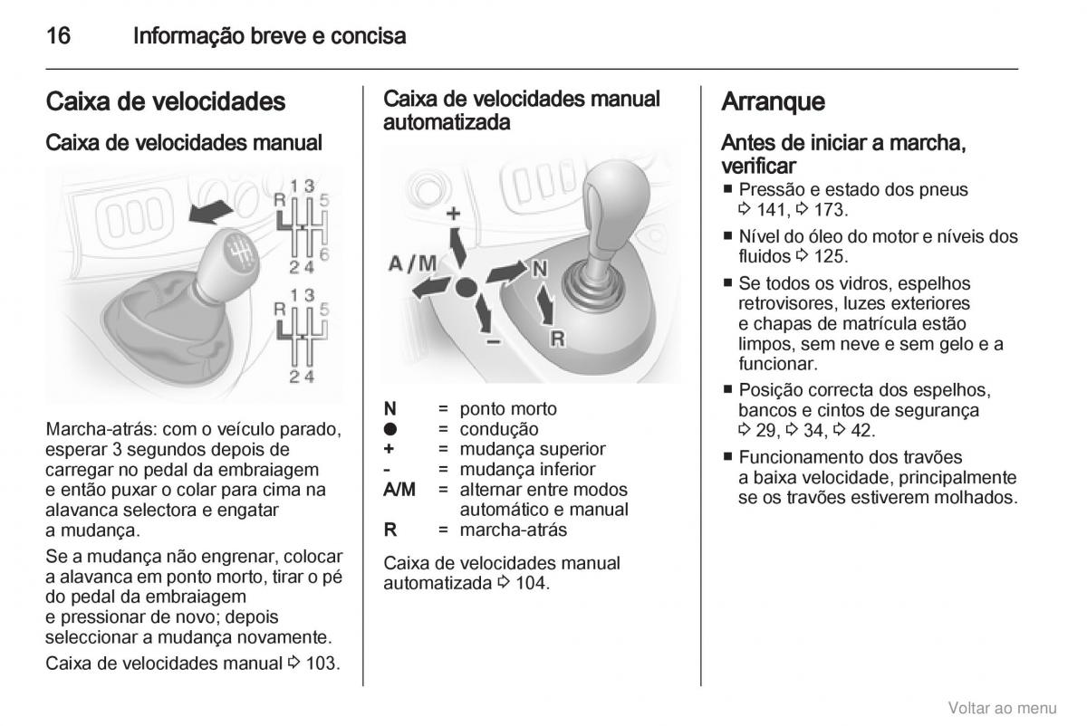 Caixa de velocidades manual Antes de iniciar a marcha,