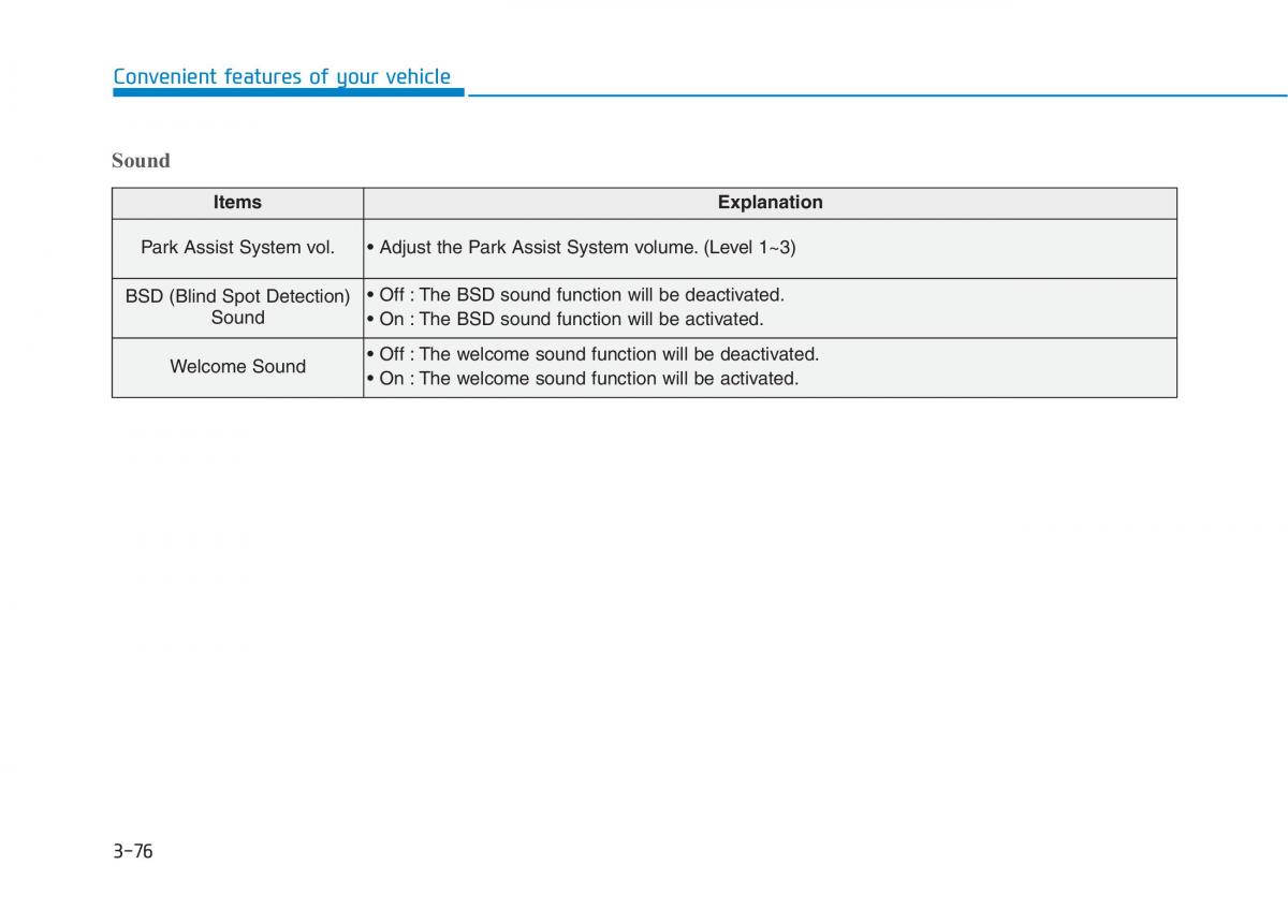 Park Assist System vol.• Adjust the Park Assist System volume. (Level 1~3)