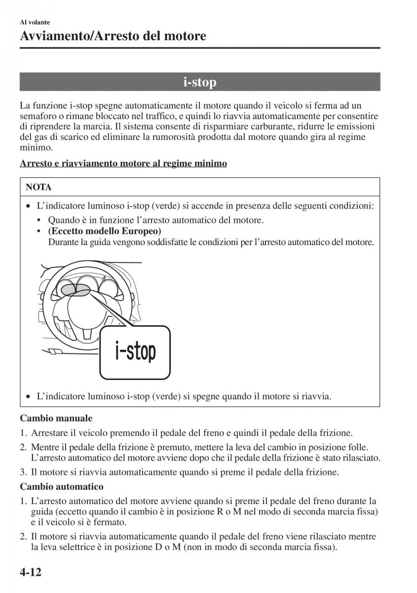 La funzione i-stop spegne automaticamente il motore quando il veicolo si ferma ad un
