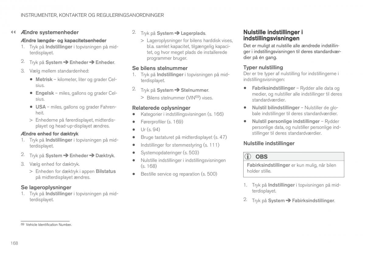 heit. Kategorier i indstillingsvisningen (s. 166) bale indstillinger til deres standardværdier.