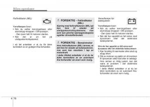 bremsesystemet (gul) tennes samtidig.I så fall anbefaler vi at du snarest muligkontrollert av en godkjent Kia-forhandler.