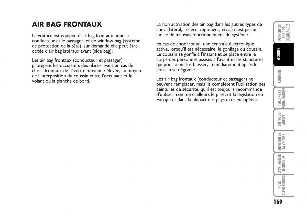 Les air bag frontaux (conducteur et passager)corps des personnes assises à lavant et les structuresSECURITE