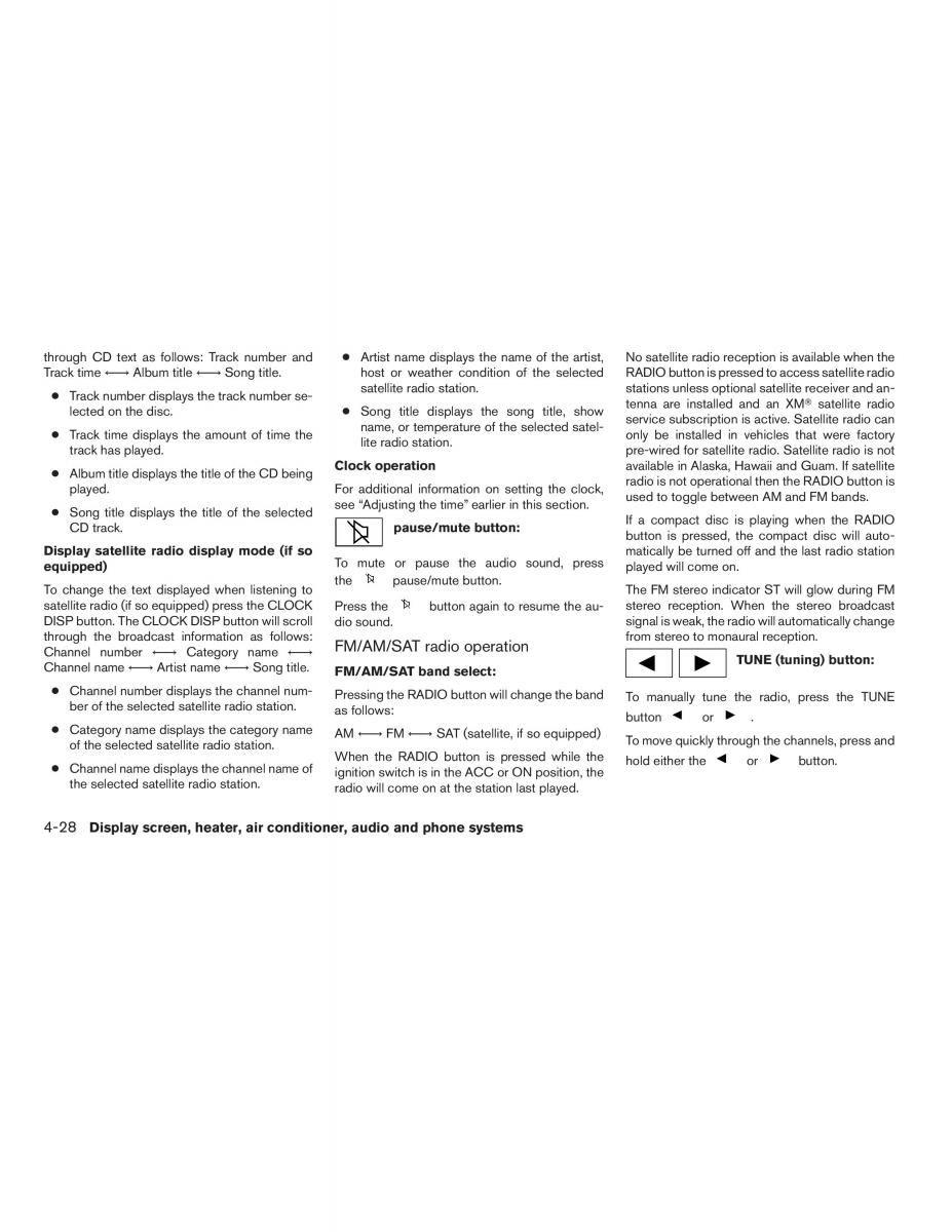 satellite radio (if so equipped) press the CLOCKPress thebutton again to resume the au-stereo reception. When the stereo broadcast