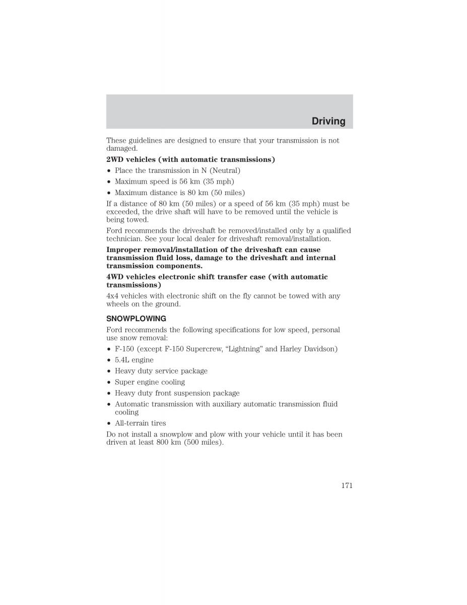 from owners manual to the vehicle Ford F-150, year of production 1995 - 2003: