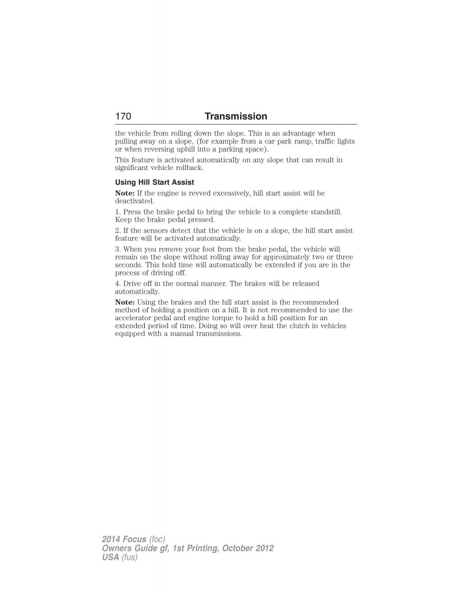 Note: Using the brakes and the hill start assist is the recommended