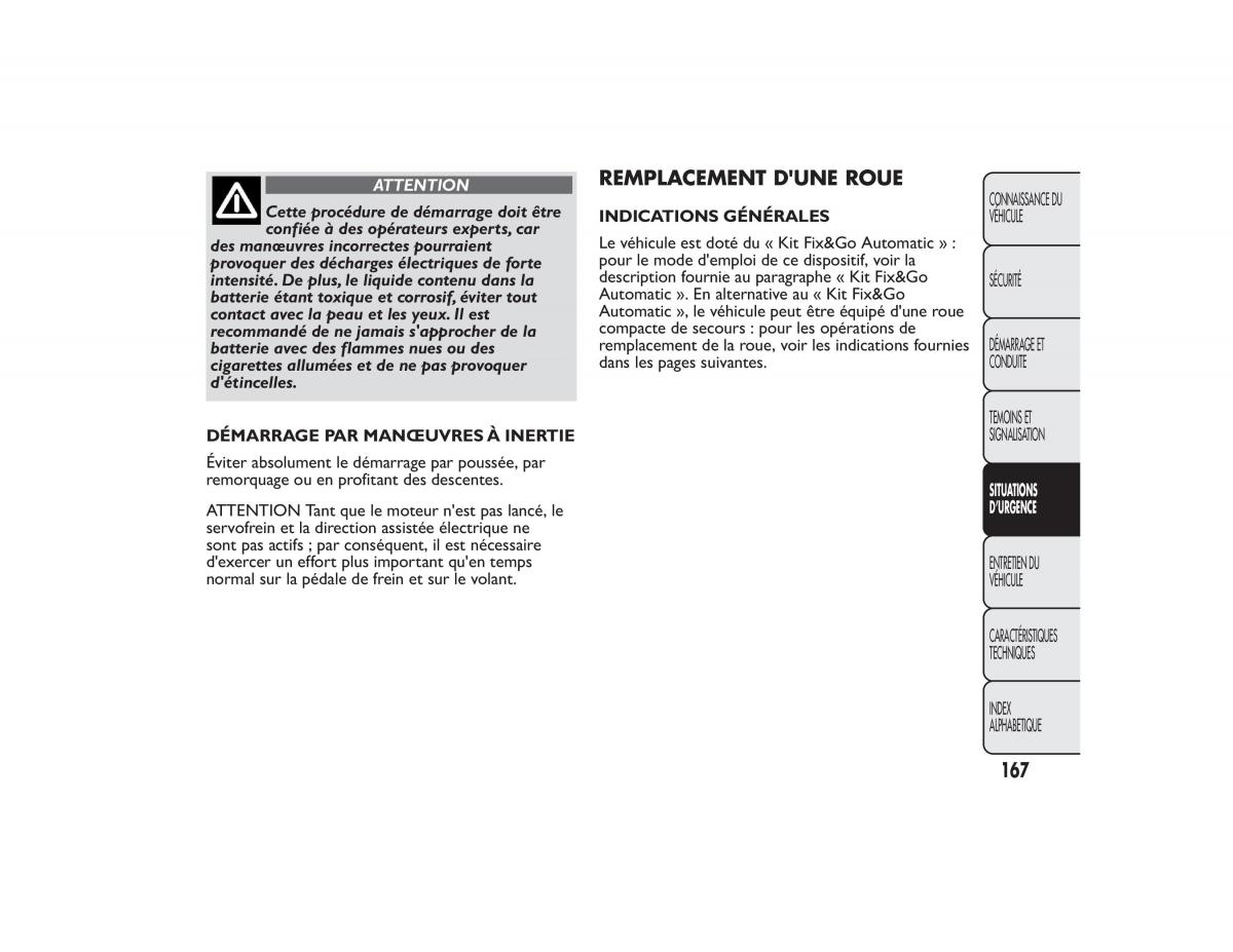 batterie avec des flammes nues ou desremplacement de la roue, voir les indications fourniesDÉMARRAGEET