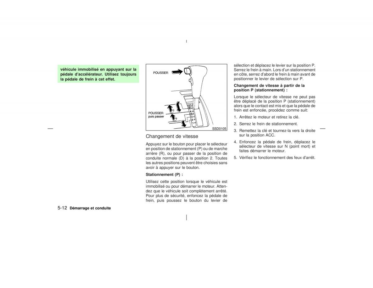 Appuyezsurleboutonpourplacerlese´lecteur4. Enfoncez la pe´dale de frein, de´placez le