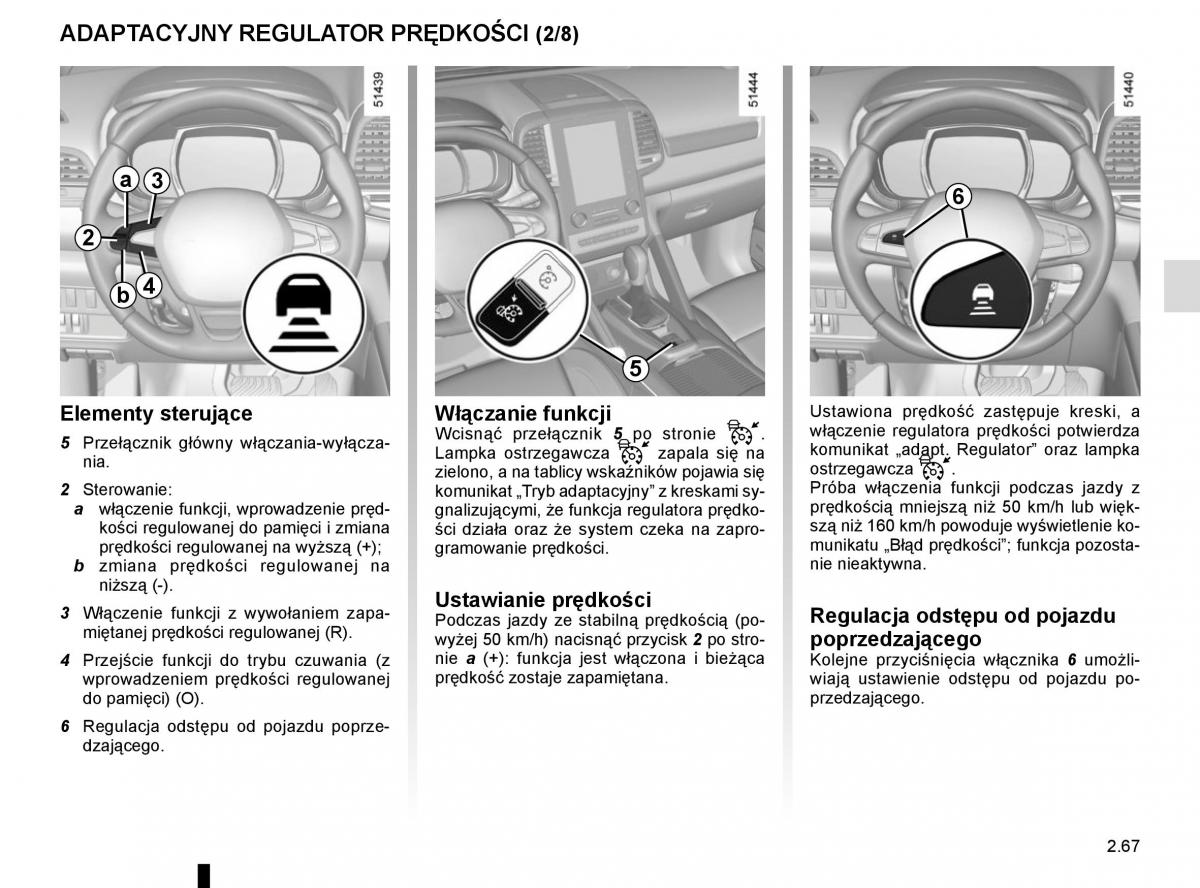 2 Sterowanie: komunikat „Tryb adaptacyjny” z kreskami sy-prędkoĞcią mniejsz nią ż 50 km/h lub wik-ę
