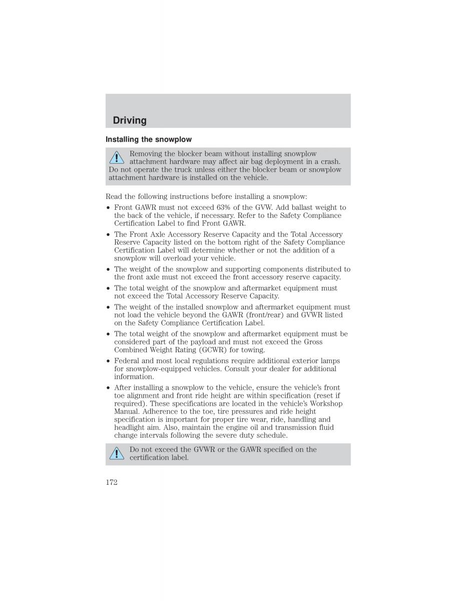 for snowplow-equipped vehicles. Consult your dealer for additional