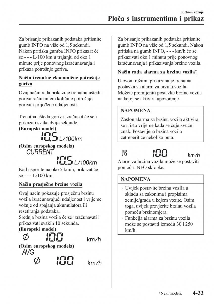 Srednja brzina vozila će se izračunavati i • Funkcija alarma za brzinu vozila
