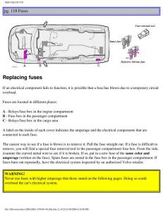 from owners manual to the vehicle Volvo V70, year of production 1999 - 2007: