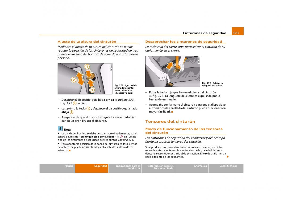 fig. 177 A, o bien Acompañe con la mano el cinturón para que el dispositivo