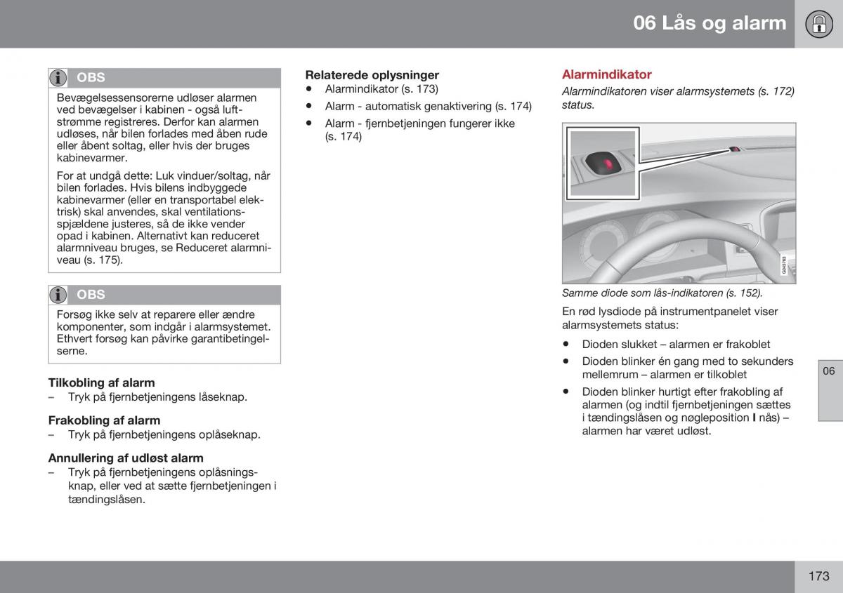 Alarmindikatoren viser alarmsystemets (s. 172)