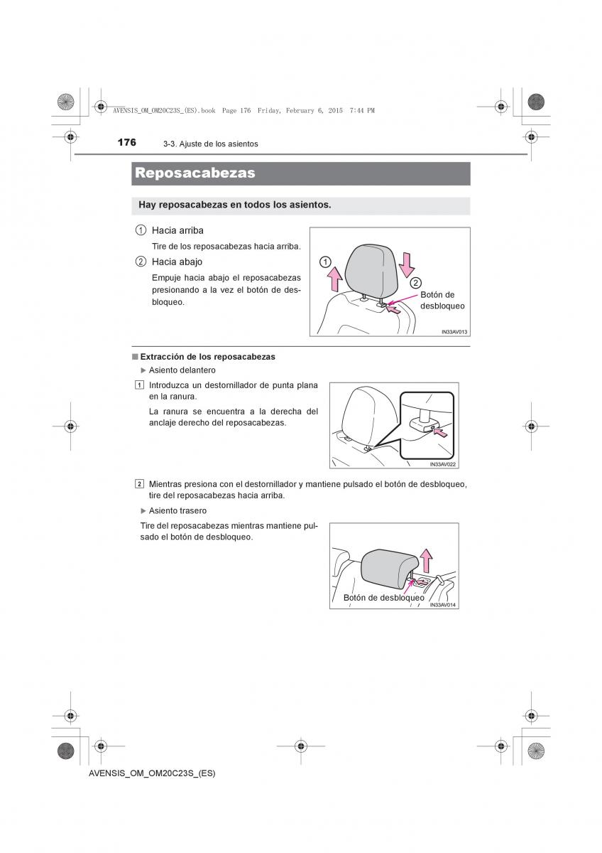 AVENSIS_OM_OM20C23S_(ES).book Page 176 Friday, February 6, 2015 7:44 PM