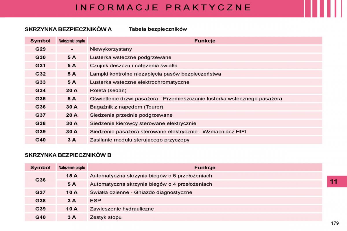 SKRZYNKA BEZPIECZNIKÓW A T abela bezpieczników
