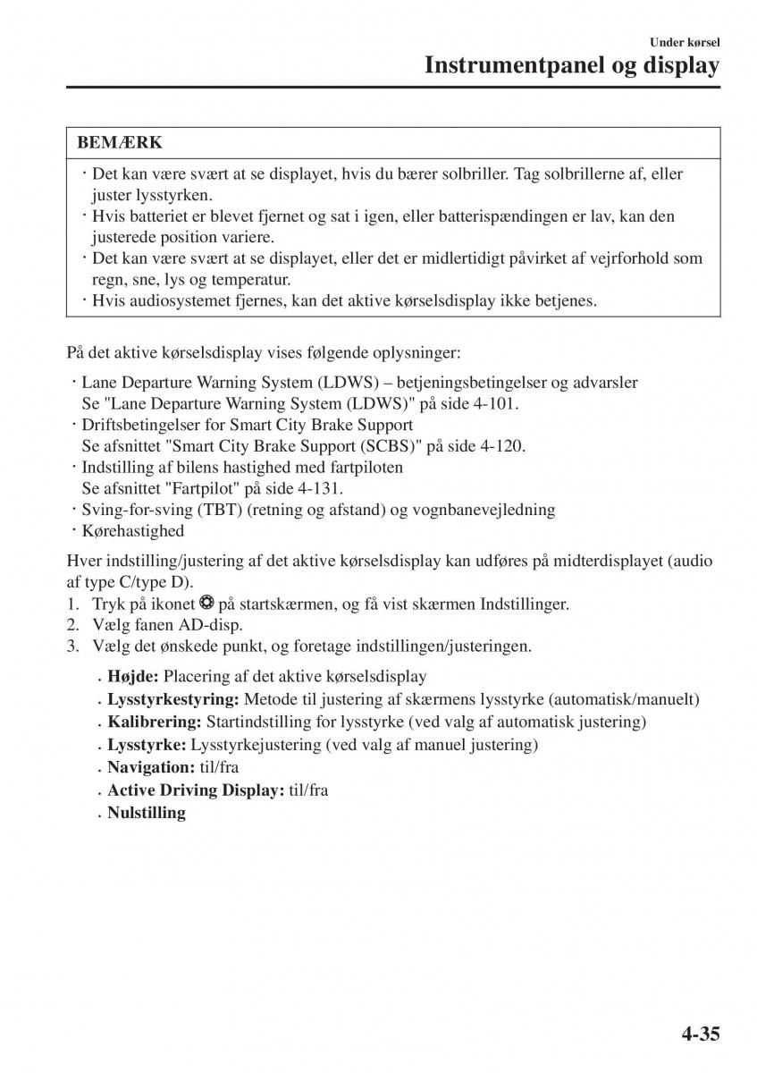 •Hvis audiosystemet fjernes, kan det aktive kørselsdisplay ikke betjenes.