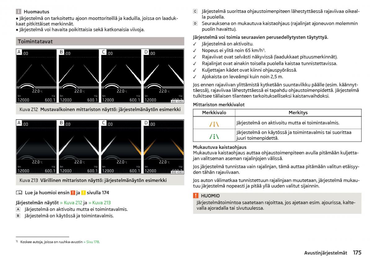 Järjestelmän näytöt » Kuva ėĖė ja » Kuva ėĖĘ Järjestelmätoimintoa saatetaan rajoittaa, jos ajetaan esim. ajourissa, kalte-