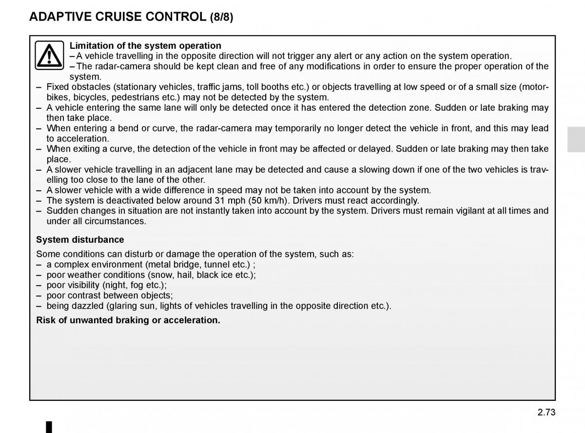 – When entering a bend or curve, the radar-camera may temporarily no longer detect the vehicle in front, and this may lead