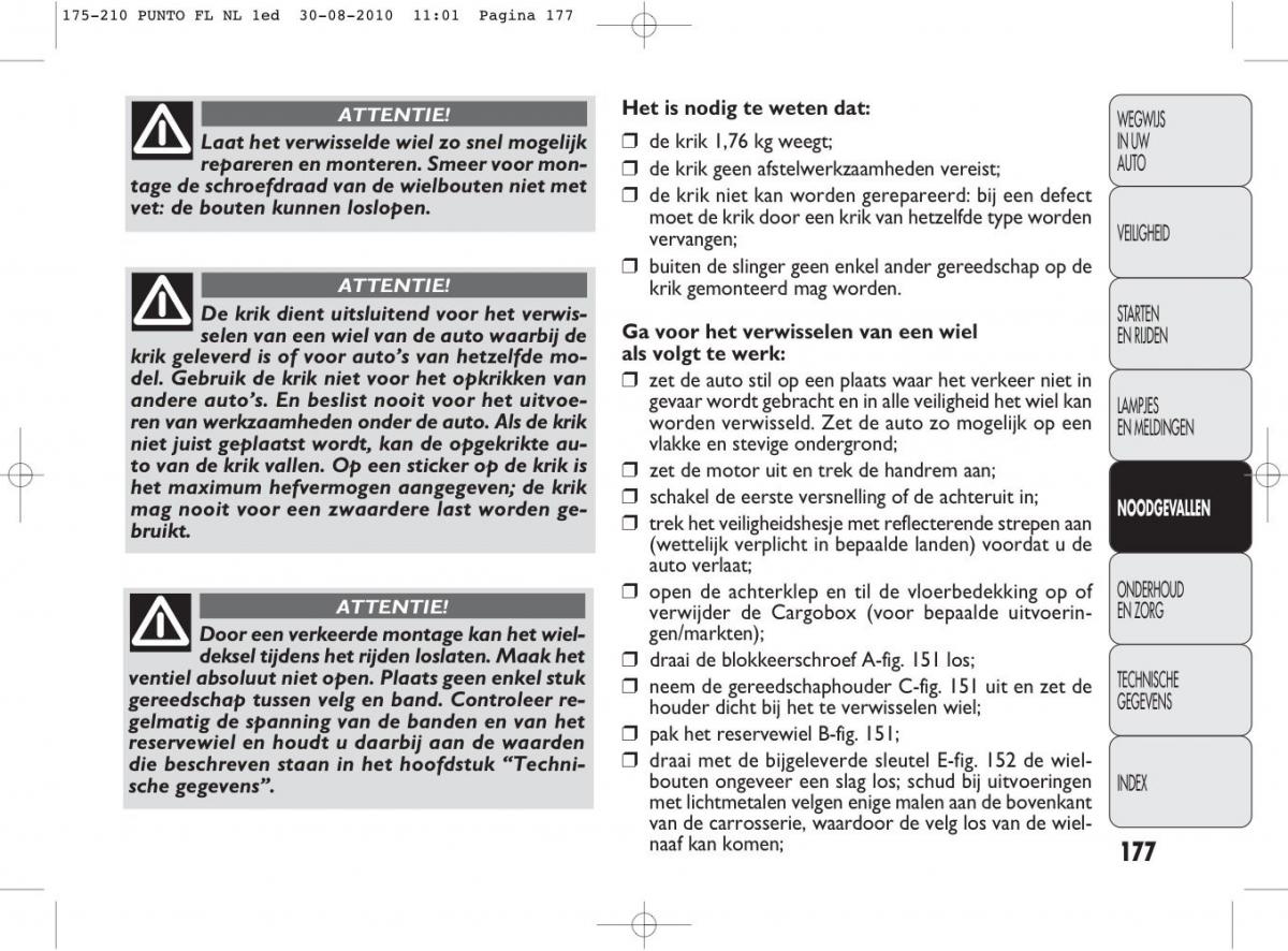 owners manual Fiat Punto Evo - year of production: 2009, 2010, 2011, 2012 - Fiat Punto Evo handleiding NL